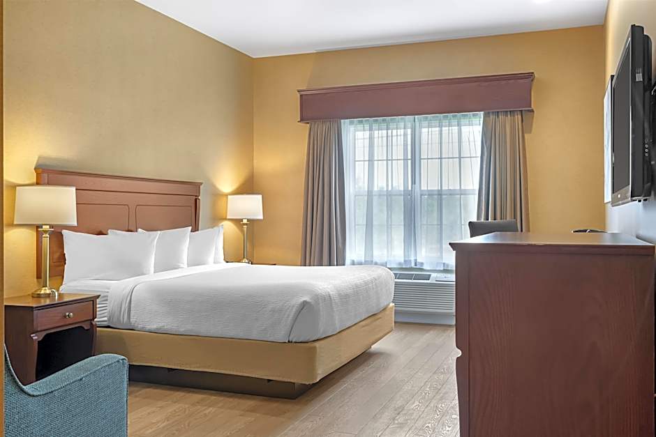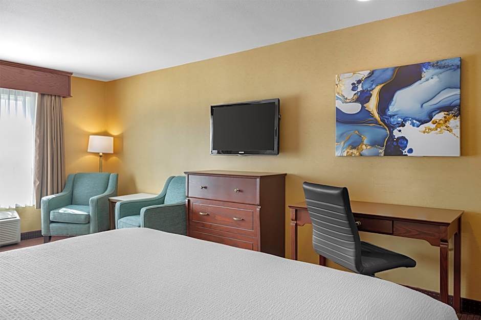 Offering free Wi-Fi and wired internet, this room includes a flat-screen TV . It offers a small refrigerator, microwave and coffee maker. Pillow-top mattresses are also included.